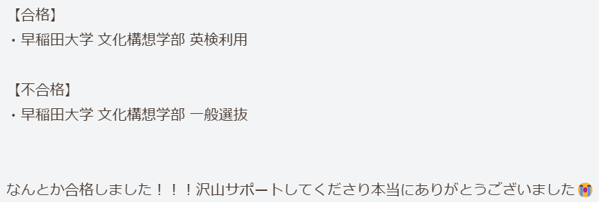 SS) 流石です!その徹底度が最難関の早稲田攻略の秘訣だね!あらためておめでとう!