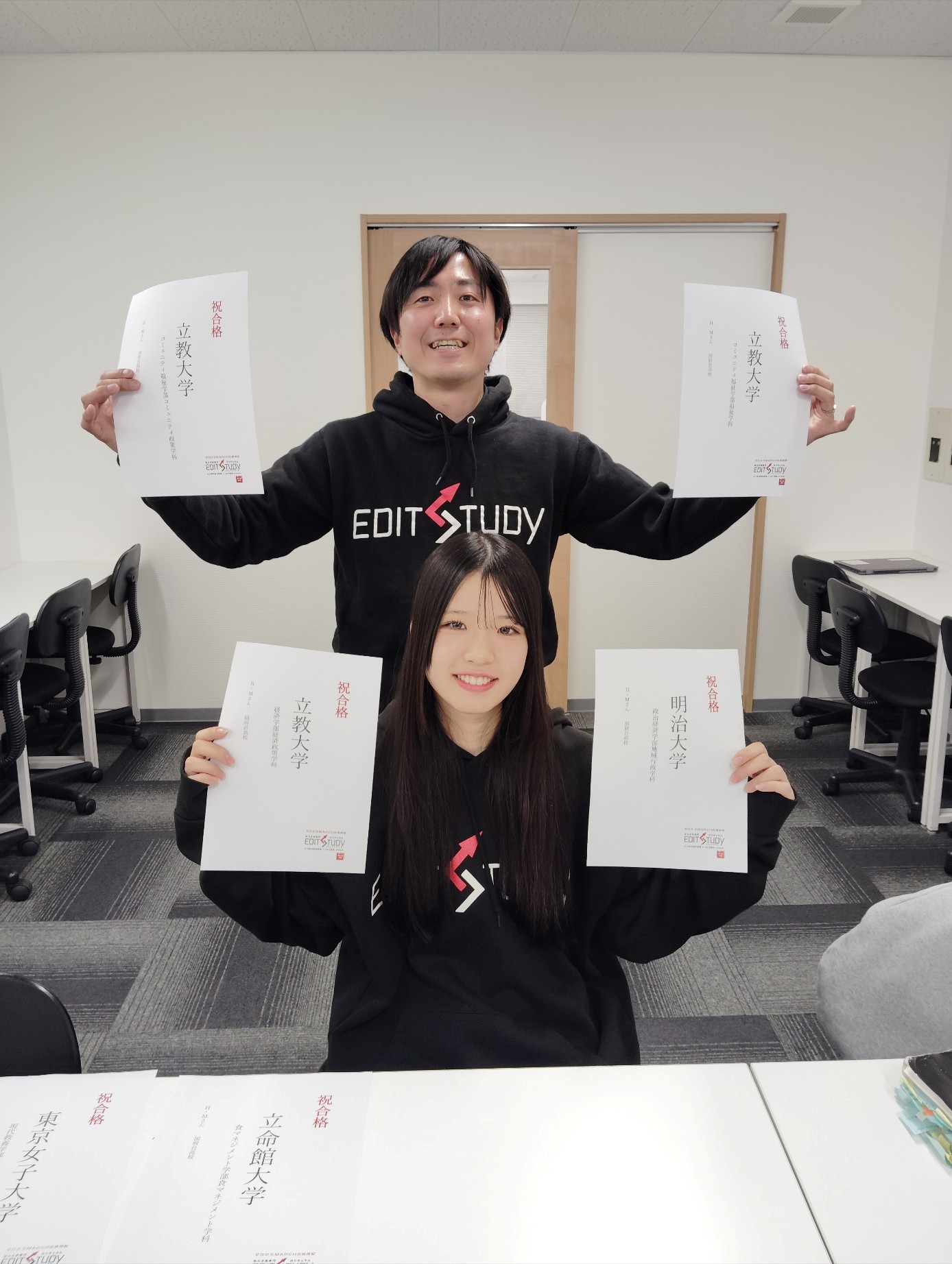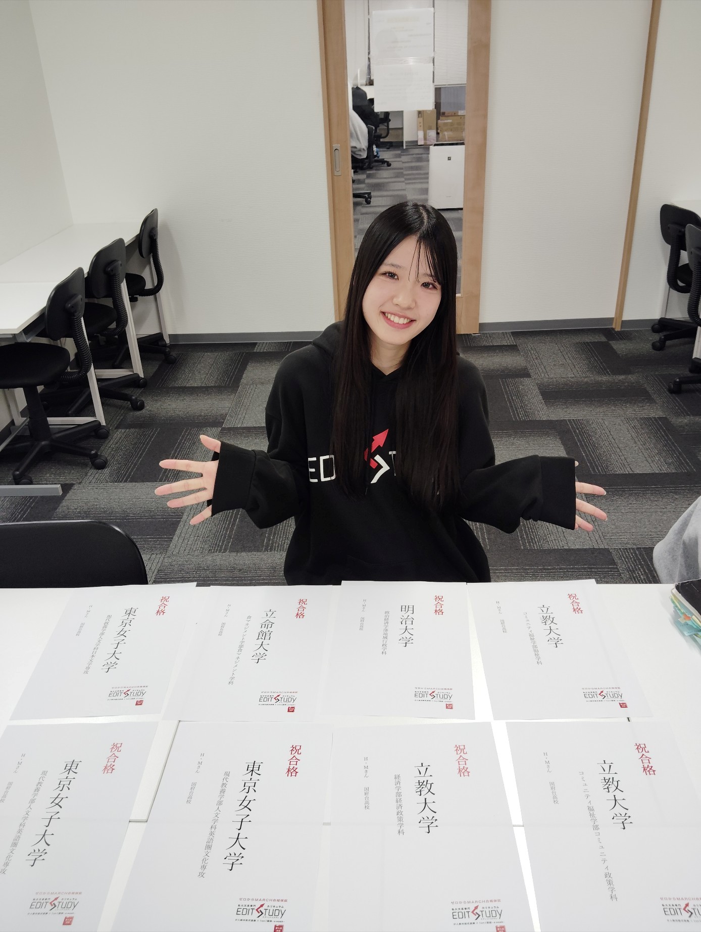 Hさん)とにかくEDIT STUDYSS(先生)たちのことは素直に信じられてました! 多分私文専門のカリキュラムだし、過去にも沢山受かってるじゃないですか?だからそれに従って先輩たちが受かったんだから、私もちゃんと素直にやってれば受かるんだっていう気持ちが大きかったんだと思います!