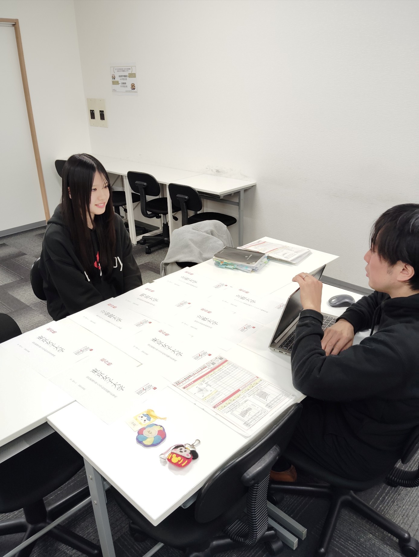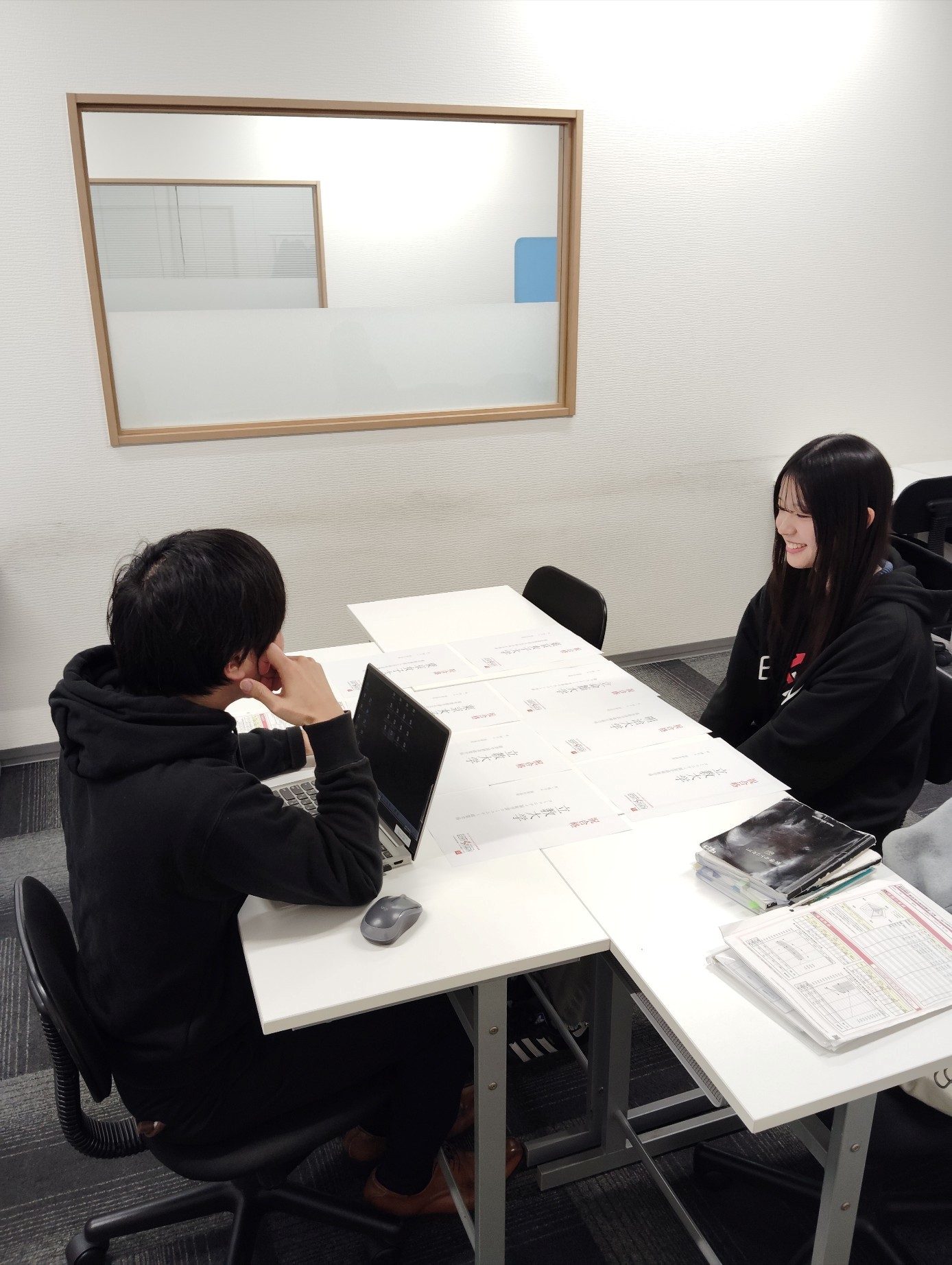 Hさん) そもそも55段階で有名な塾の時も55段階の個別指導もあったけど、私が全然勉強やらなくて、その後AO入試にチャレンジしようと思って塾に二つ通ったんですよ。それでもなんかAOも本当に合わなくて、どうしようってなった時にEDIT STUDYのチラシ思い出して、ここならもっと管理してもらえて自分でも成長できるかもって思って体験に来ました。