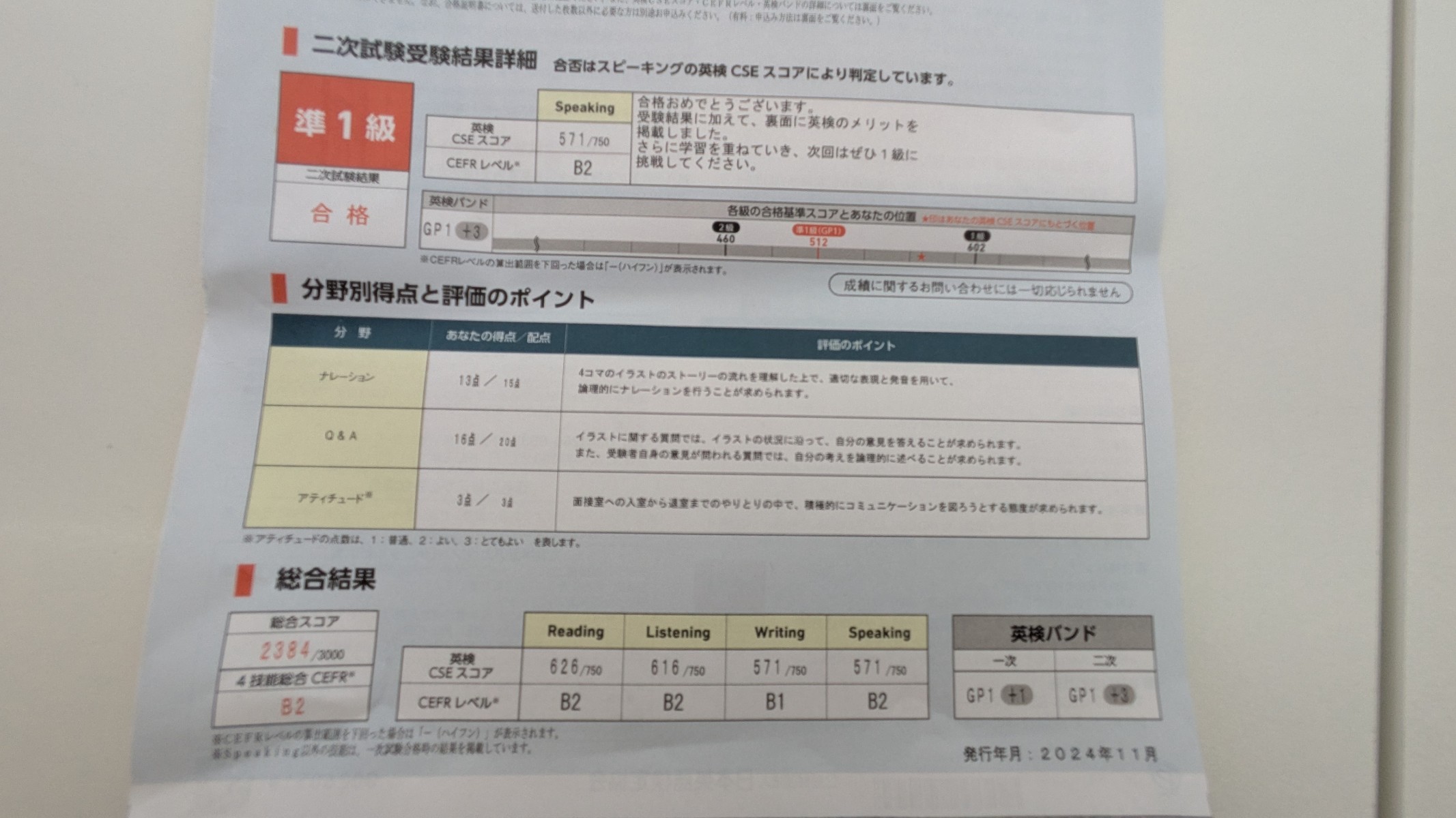 SS)Iくんは一発目に受けた6月で英検準1級に合格できたよね。確か現役時代はスコア2260くらい?