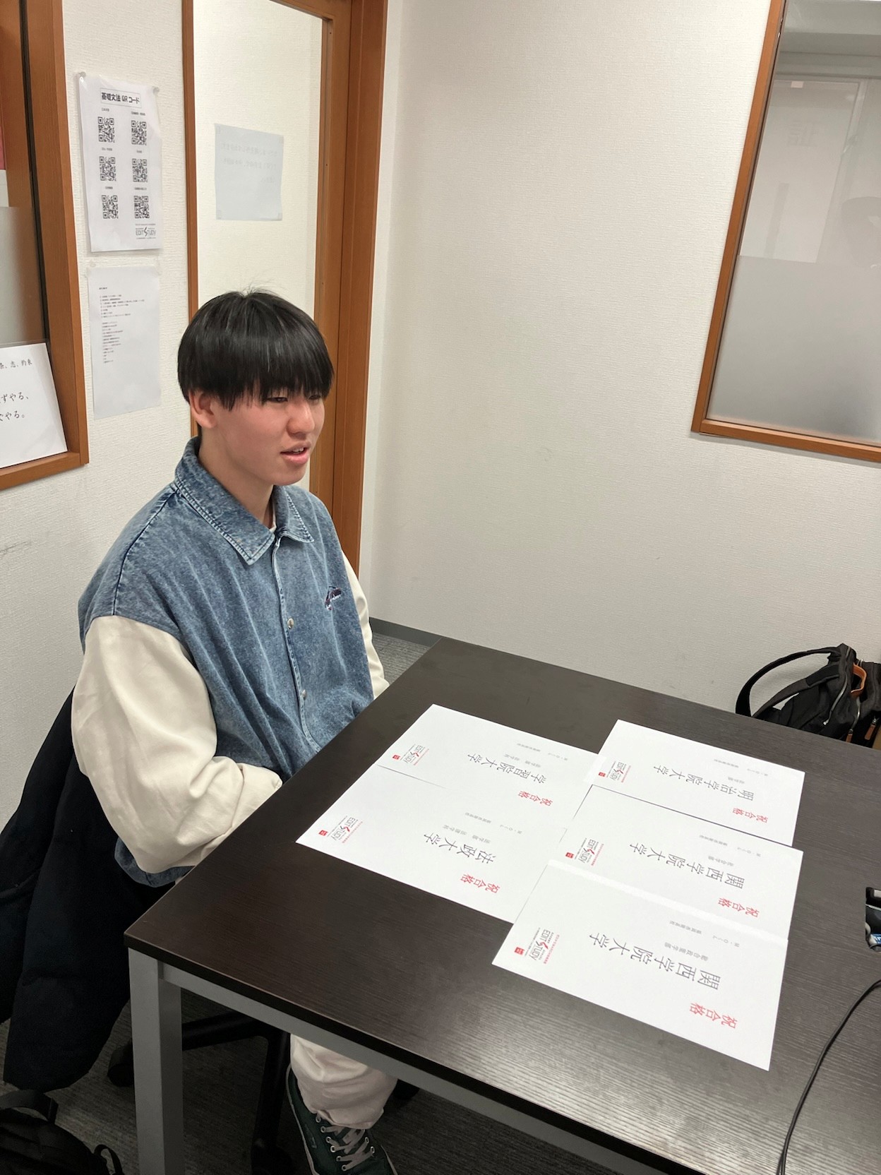Oくん) ありがとうございます。やっぱり最初に学習院の法学部の合格発表を見たときが一番ホッとしました。正直、他の学部を受けて落ちたりしていたので、「あ、ダメかもしれない…」という不安があって。でも法学部はちゃんと受かっていて、一気に安心した感じです。
