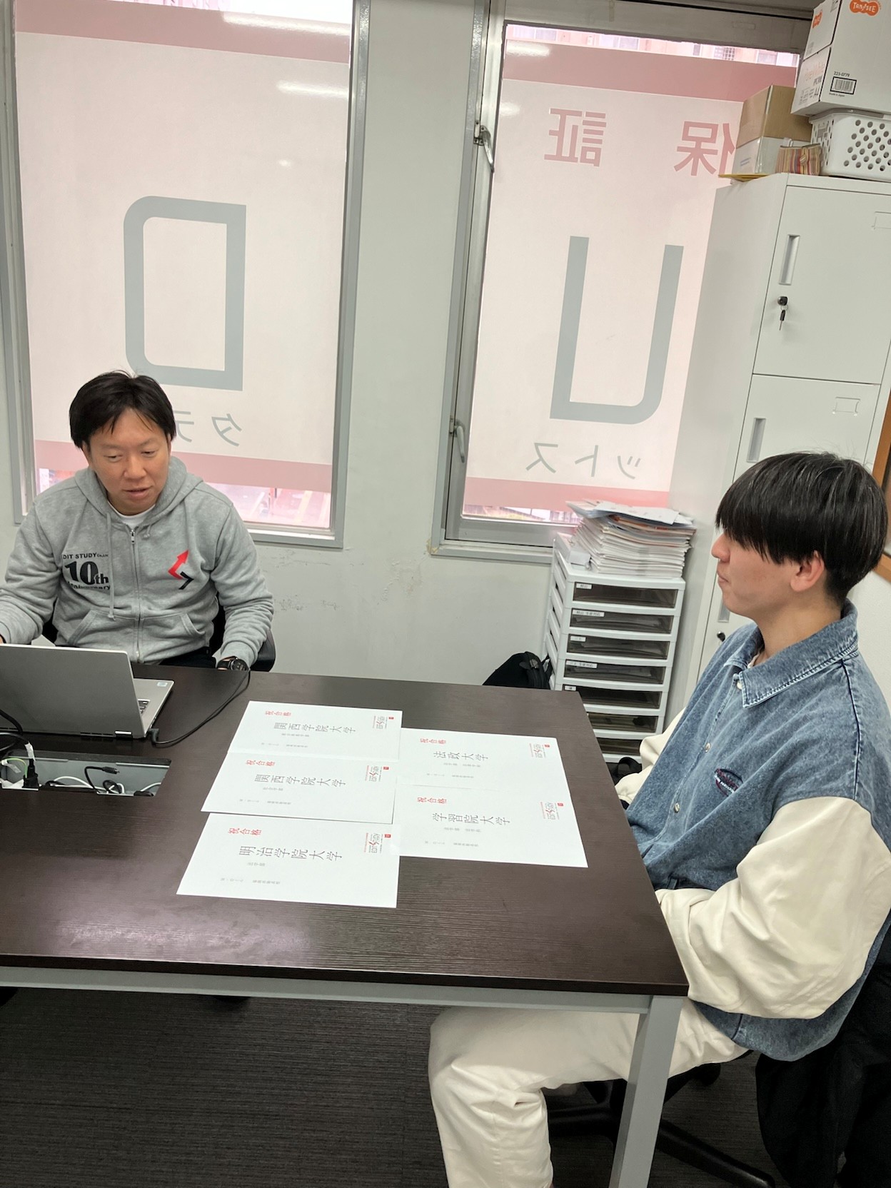 Oくん) 母が「ここ、いいらしいよ」と教えてくれて、体験授業を受けに行ったんです。大手予備校だと、駿台か河合塾あたりも候補でした。でも、基礎からやり直したかったし、体験授業の5文型の説明がすごく分かりやすくて、ここならちゃんとゼロから仕上げられそうと思って決めました。