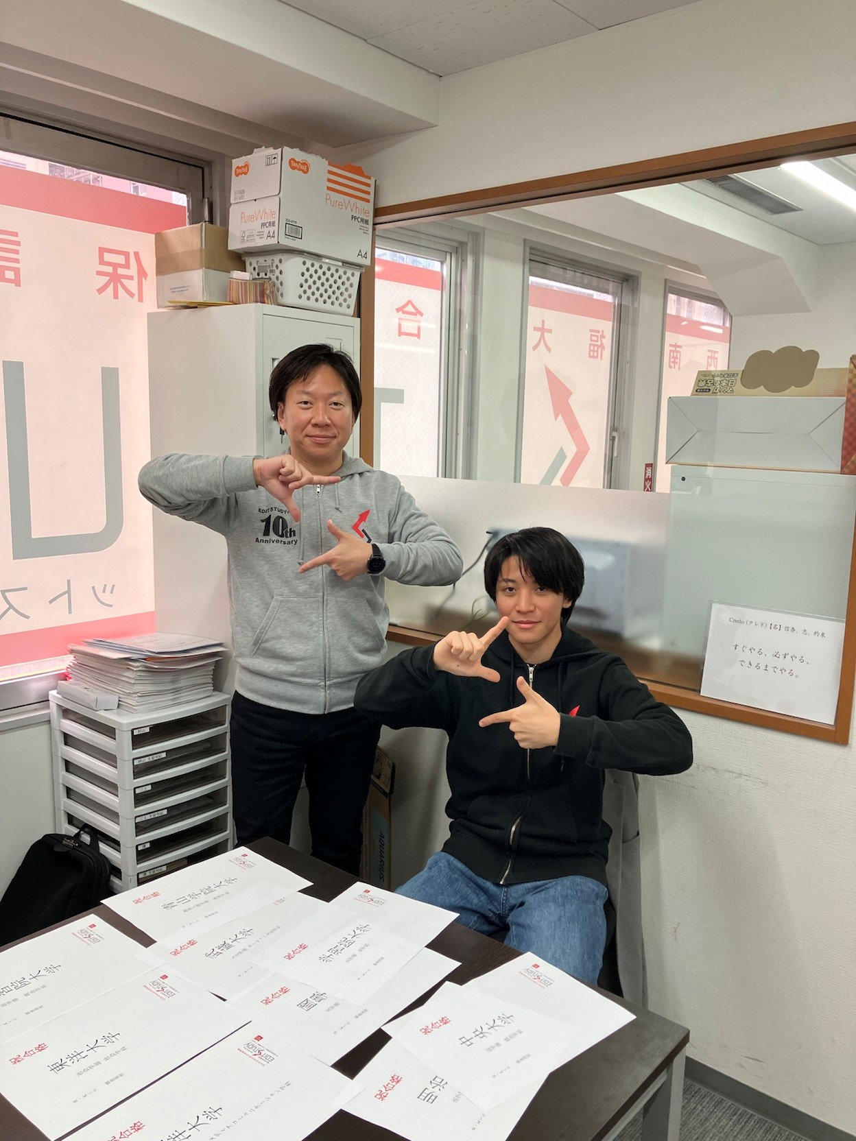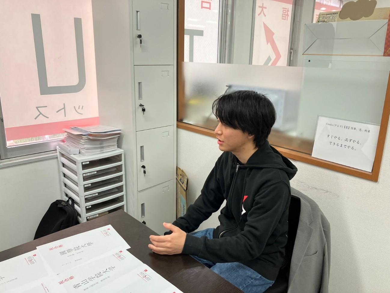 Kくん)実は5月ぐらいにちょっとホームシックじゃないですけど、昔の高校の友達がみんな大学で楽しそうにしてるのを見て「俺、何やってんだろ…」と思いかけた時期がありました。でも、そのとき塾の仲間たちが一生懸命やってる姿を毎日見て、「いや、ここでやめるのはダメだ」って踏ん張れたんです。結果、きついと思う時期もあんまり長引かずにすんだので、本当に助かりましたね。
