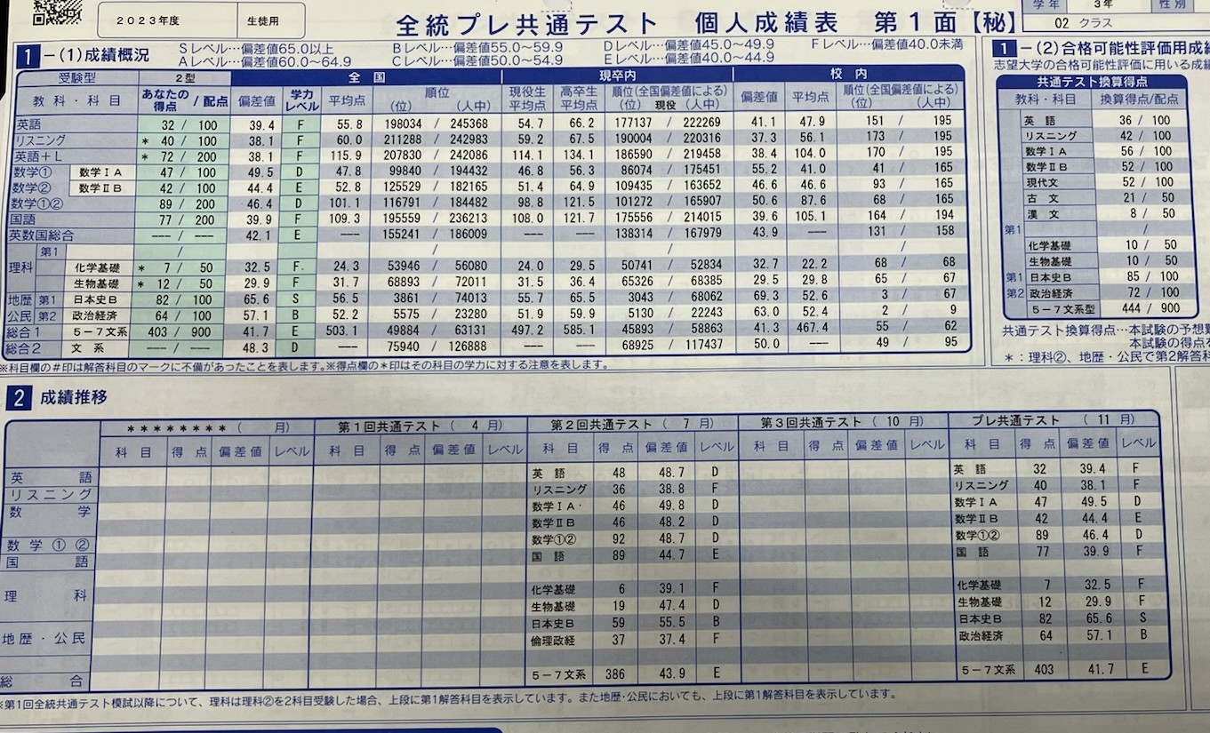 Kくん)僕は浪人開始前時点での模試が偏差値40代どころか30台まで落ち込んでたこともありました。でも、それでも1年みっちりやれば、MARCHや学習院ぐらいなら十分合格ラインに乗れる。これは本当に強調したいです。