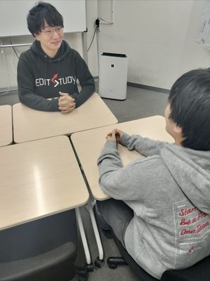 Aくん)一番はやっぱり1on1面談ですかね。他の塾も相談できる制度はあるんですけど、EDITSTUDYは相談するのに特化しているというか。ここのSS(先生)はみんな資格を持ってて技術を持ってるみたいなのあるじゃないですか(笑)