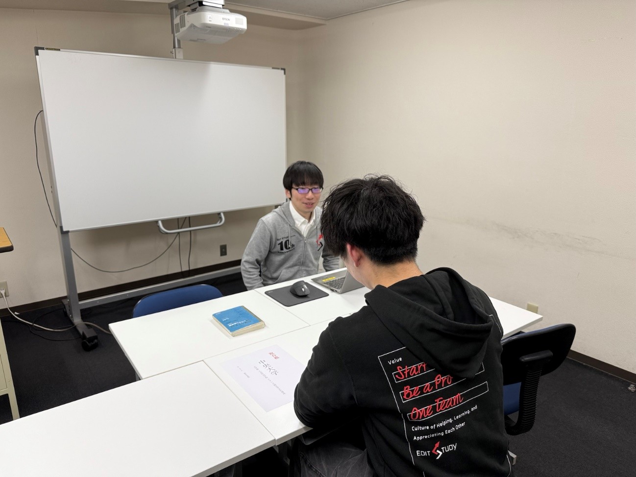 Sくん)当時、英検2級の2次試験が控えてたんですけど、体験授業のときに先生にコツや対策方法を教えてもらって、それで合格できたのでいいなと思って、EDIT STUDYに入塾することにしました。
