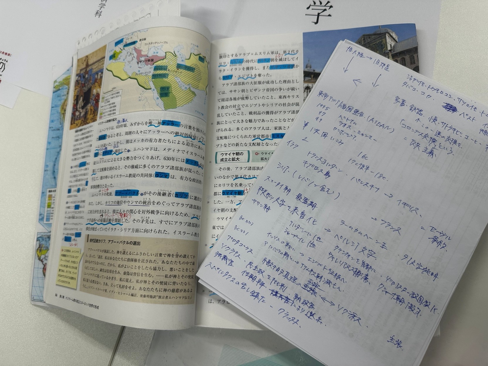 Y・Rくん)まずあべしゅんこさんのYouTubeで日本史の勉強法の動画を見て、それをきっかけに阿部俊子さんが通っていた塾があるって知ったのがきっかけですね。もともと個人のサポートが手薄い大手予備校に行くつもりはなかったので、そこでESを知って、英語の読み込み勉強法とか、日本史のやり方が今の自分の価値観にマッチしたので、ここが自分にとってはベストの選択肢なんじゃないかなと思って体験に来てって感じです。最初の体験授業を3回ぐらいうけて、その中で、今までは何となく考えていたことがどんどん言語化されていくみたいな感覚に陥って、その瞬間に、もうここにしようって決めてました。